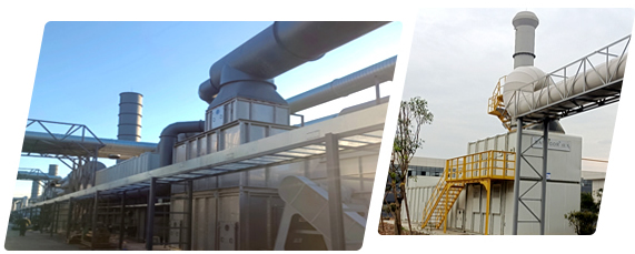 工藝沸石轉輪+CO 技術難點:塑膠加溫后廢氣含有高沸點物質,氣體溫度較高 方案:氣體冷卻后進入四級過濾,過濾去除焦油和顆粒物后進入沸石轉輪濃縮后進入CO氧化處理 結果:排放值5-8mg/Nm3